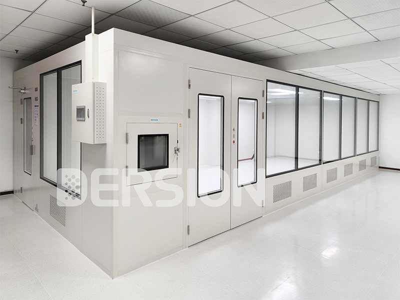 本潔凈室項(xiàng)目以模塊化設(shè)計(jì)為核心,嚴(yán)格遵循萬級潔凈標(biāo)準(zhǔn)匠心打造。模塊化潔凈室主體結(jié)構(gòu)采用手工巖棉板與雙層中空玻璃組合,既保障了結(jié)構(gòu)的穩(wěn)固性與密閉性,又通過通透質(zhì)感與簡潔線條呈現(xiàn)高顏值外觀;內(nèi)部吊頂采用絲桿吊結(jié)構(gòu),安裝高效且承重可靠,完美契合模塊化快速搭建與后期調(diào)整的需求。氣流組織采用頂送側(cè)回設(shè)計(jì),搭配 FFU(風(fēng)機(jī)過濾單元)與高效過濾器的黃金組合,可快速過濾空氣中的微粒雜質(zhì),確保潔凈度持續(xù)達(dá)標(biāo)??刂葡到y(tǒng)配備7寸液晶觸摸屏,實(shí)現(xiàn)運(yùn)行參數(shù)的實(shí)時(shí)監(jiān)控與便捷調(diào)節(jié);同時(shí)配套1臺風(fēng)淋室與1個(gè)普通傳遞窗,分別完成人員除塵與物料潔凈傳遞,全方位阻斷外界污染。